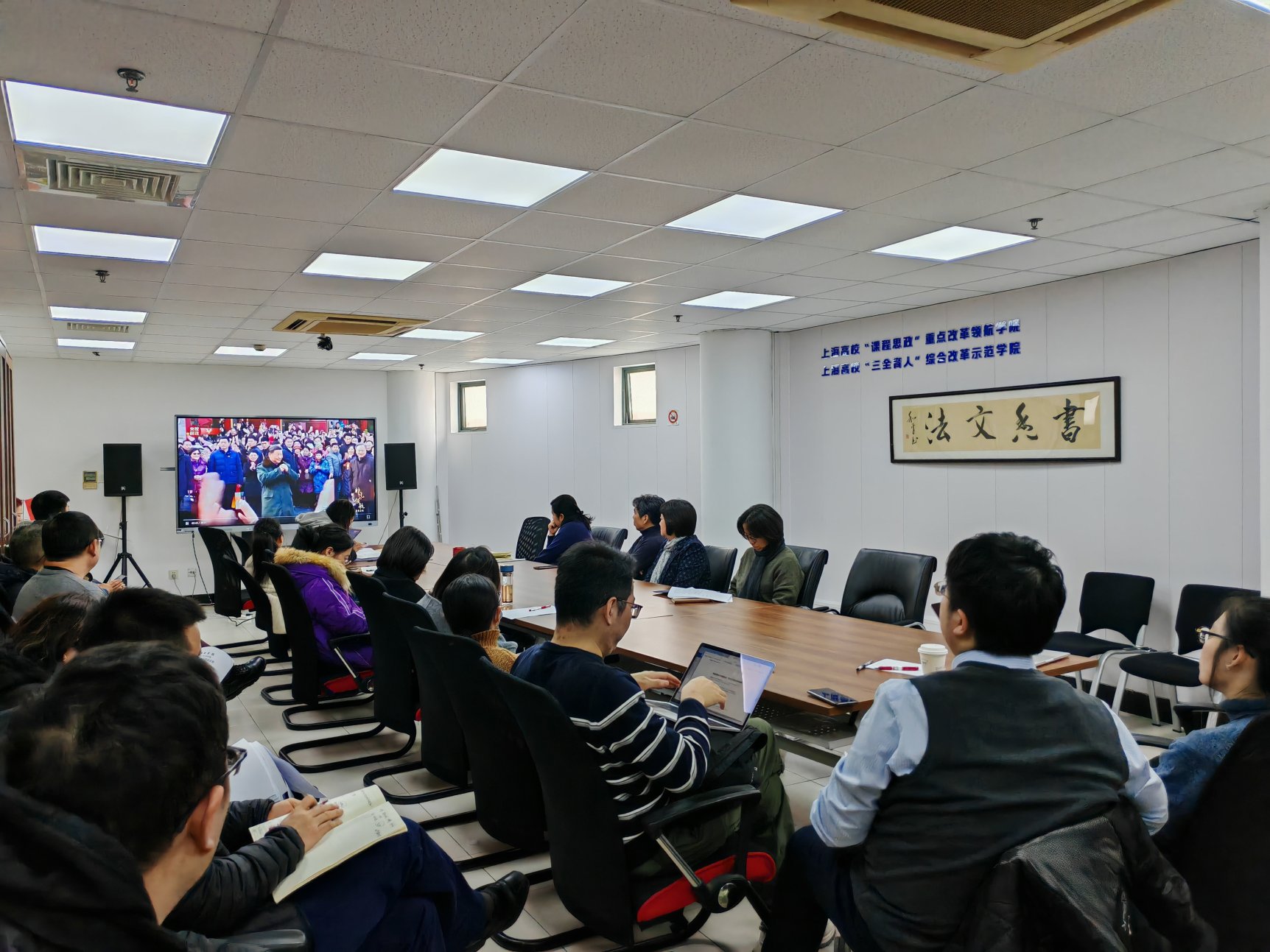 图为文法学院全体教职工学习习近平总书记最新讲话精神现场