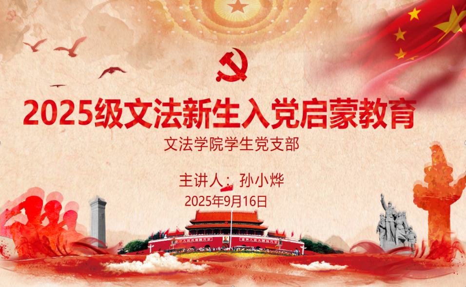 为帮助文法学院2025级新生系统掌握入党知识、明确入党方向,9月16日,文法学院学生党支部开展新生入党启蒙教育,为有入党意愿的新生搭建全方位学习平台,教育引导青年大学生坚定信念、追求进步,树立正确的世界观、人生观、价值观和政治方向,激发入党积极性,端正入党动机,积极向党组织靠拢。会议由学生党支部书记孙小烨老师主持。