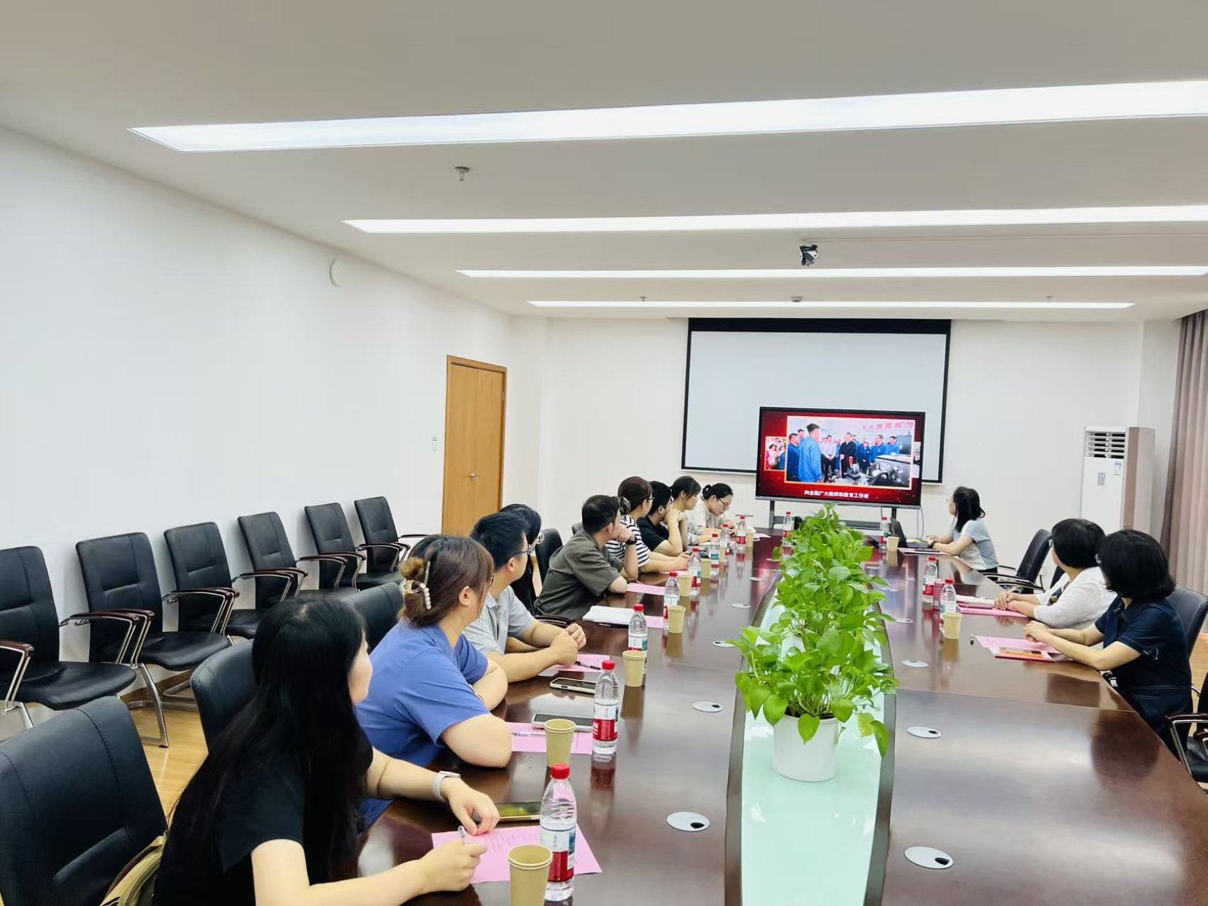 在主题学习环节,全体与会成员首先认真学习了习近平总书记给全国特岗教师代表的回信原文。朱永莉带领大家逐字逐句研读,深刻领会回信精神。她强调,回信不仅体现了习近平总书记对广大教师的殷切期望和对教师队伍建设的高度重视,更是对全体教育工作者扎根奉献、教书育人的巨大鼓舞。随后,全体与会人员共同观看了讲述习近平总书记关心关爱教师群体、高度重视教育工作的专题片《习近平的教师情》。观看结束后,大家纷纷表示,要将总书记的勉励和期望转化为前进的动力,深刻理解和自觉践行教育家精神,以赤诚之心、奉献之心、仁爱之心投身教育事业,做党和人民满意的“四有”好老师,为培养德智体美劳全面发展的社会主义建设者和接班人贡献全部力量。