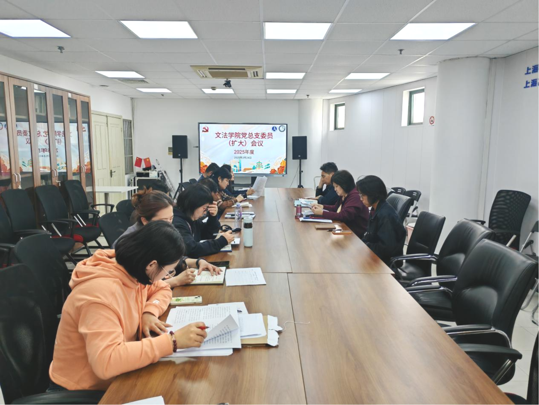 图为文法学院党总支委员(扩大)会议部署学习教育工作