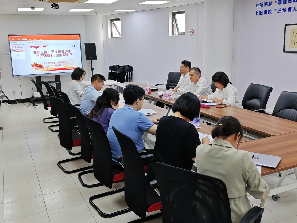 为深入开展党纪学习教育,增强支部党员纪律意识,提高党性修养,切实发挥支部战斗堡垒作用,6月11日下午,文法学院教职工第一党支部在行政楼607会议室召开支部党员大会,支部书记汤景桢讲授了主题为《以严明的纪律推进全面从严治党向纵深发展》的党纪学习教育专题党课。校党委副书记陈晓峰观摩并指导支部组织生活。