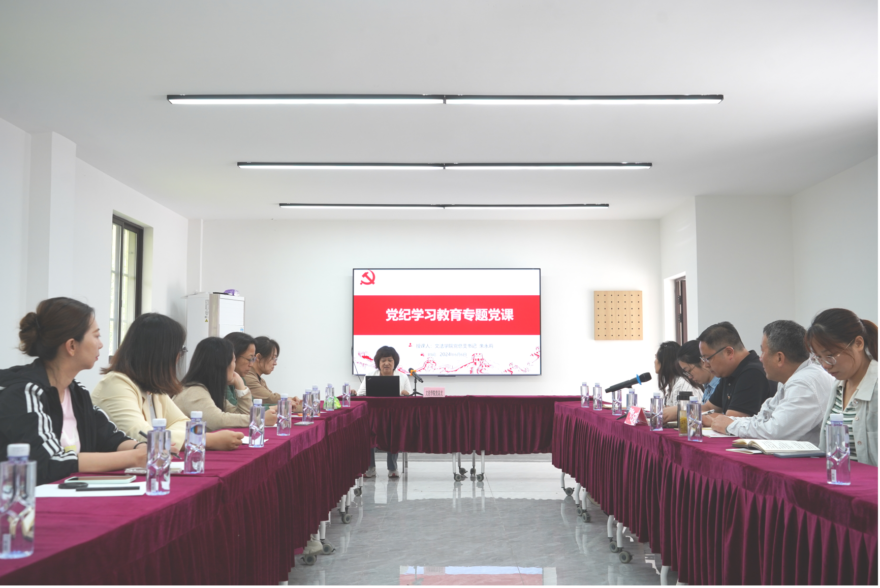 图为文法学院党总支书记朱永莉讲授党纪学习教育专题党课