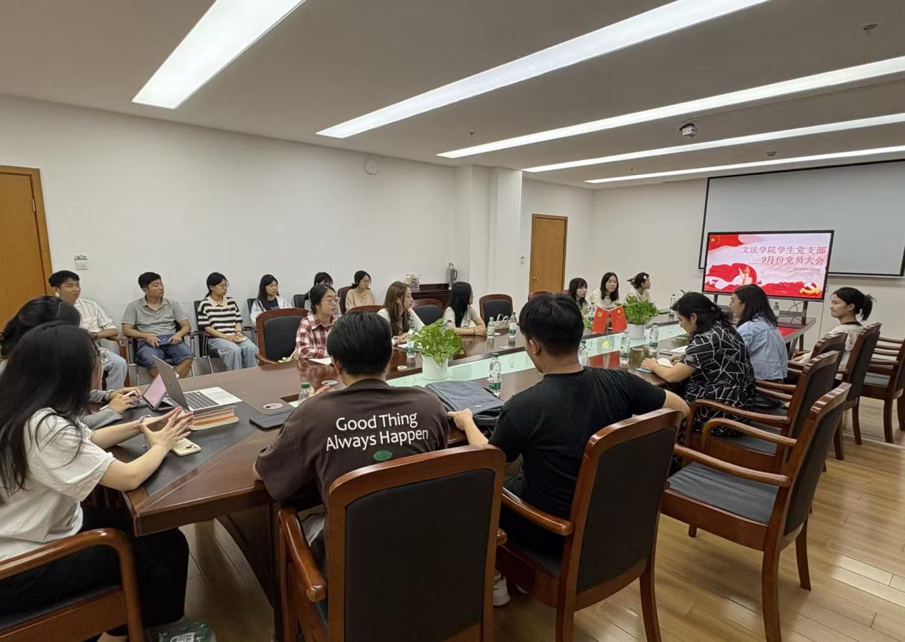 2025年9月18日,值此中国人民抗日战争暨世界反法西斯战争胜利80周年之际,文法学院学生党支部在徐汇校区1503会议室召开“弘扬伟大抗战精神 奋进民族复兴伟业”9月份主题党日。会议紧扣时代脉搏,围绕学习贯彻重要讲话精神、深化纪律教育、强化实践担当,展开了一场思想的洗礼,为青年党员筑牢信仰之基、激发奋进之力注入了强劲动能。