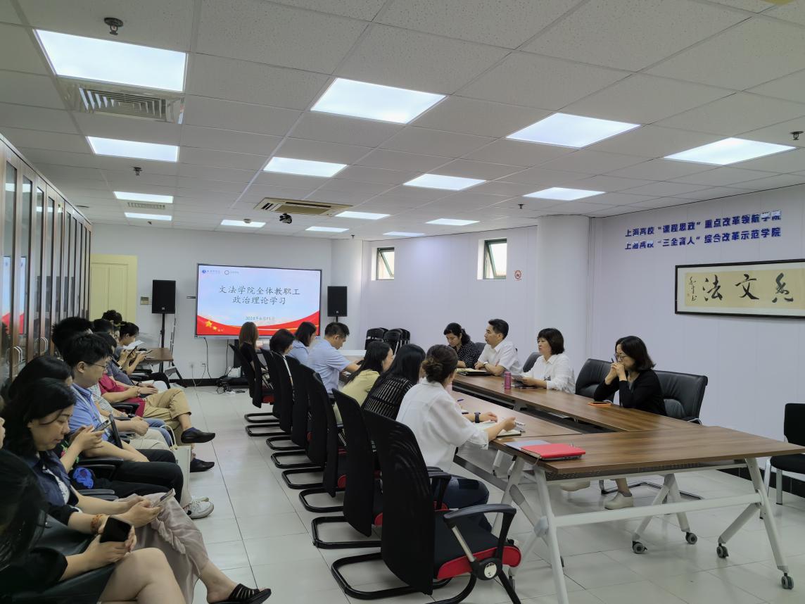 为进一步加强教职工政治理论素养,提高学习的针对性和时效性,2024年6月11日下午,文法学院在奉浦行政楼607会议室组织全体教职工开展政治理论学习活动,学习总书记对学校思政课建设作出重要指示及在中共中央政治局就促进高质量充分就业会议上的讲话精神。会议由文法学院党总支书记朱永莉主持,学院领导班子、全体教职工出席。