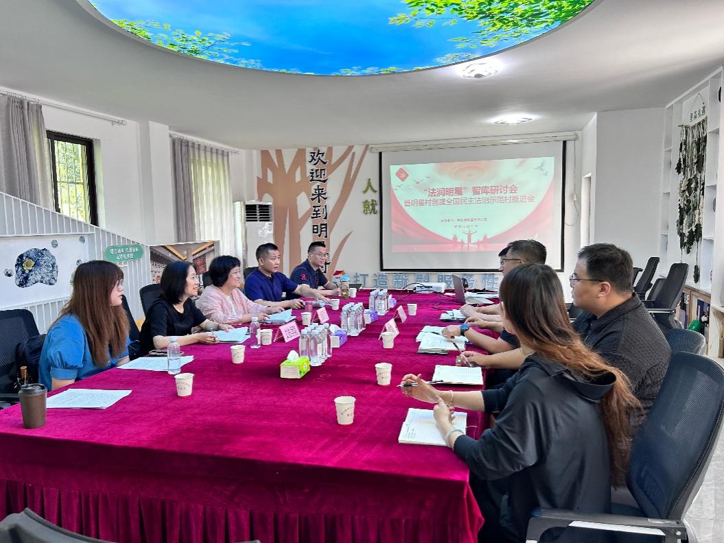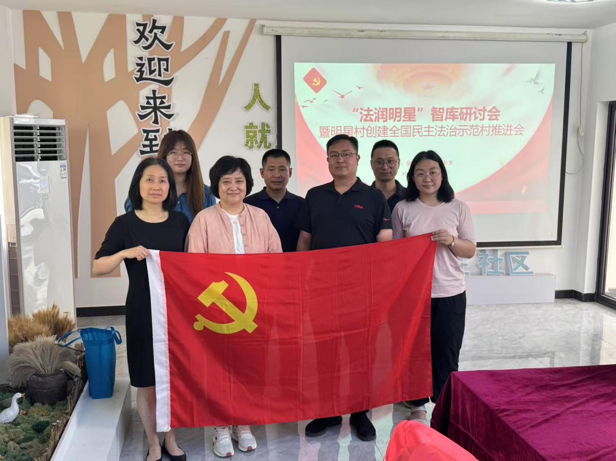 为深入开展“学思想 强作风 建新功”活动,持续推进“一支部一实事”、“我为群众办实事”,深化校地合作与区域化党建,2025年7月16日上午,上海商学院文法学院党总支受邀参加明星村创建全国民主法治示范村推进会。奉贤区金汇镇司法所所长盛志新、明星村党总支书记钟晨军、上海商学院文法学院党总支书记朱永莉、教职工第一党支部书记汤景桢、法学系主任何爱华、法学专业负责人林沈节、学生党支部书记孙小烨、讲师闻天吉等人参加了此次活动。