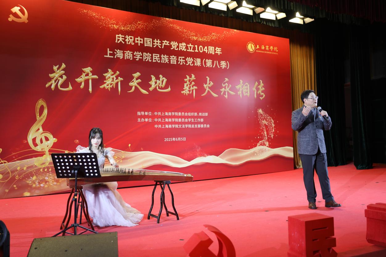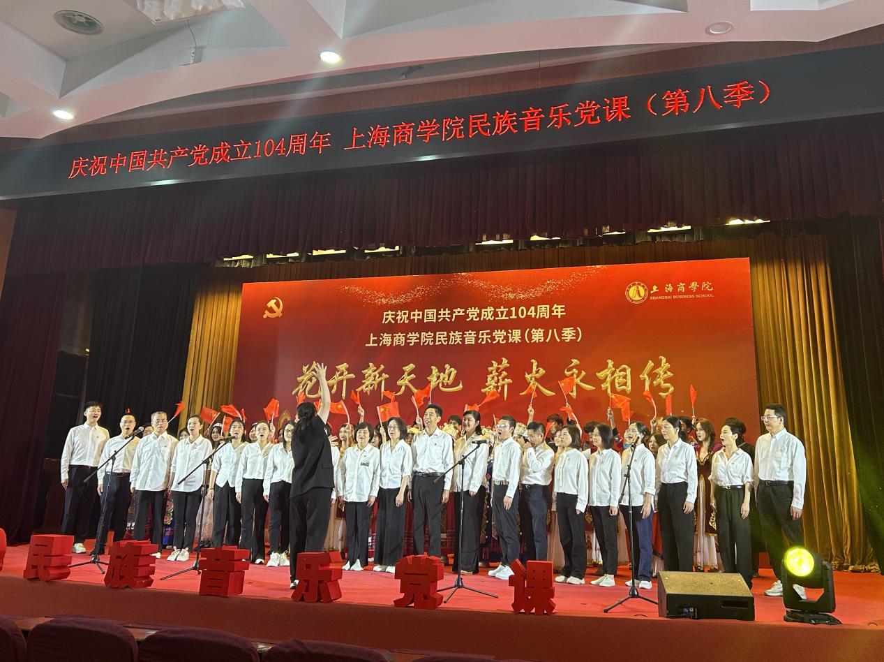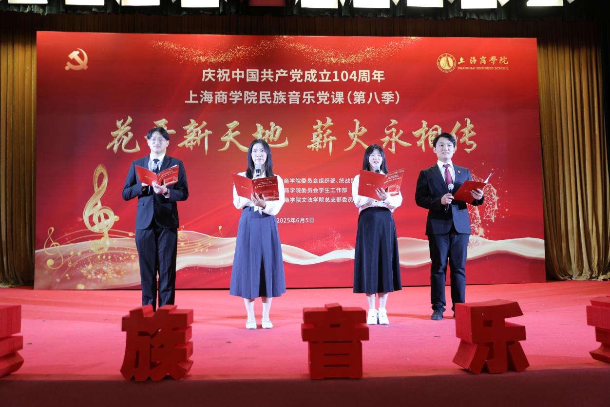 为庆祝中国共产党成立104周年,巩固拓展学习贯彻习近平新时代中国特色社会主义思想主题教育成果,巩固深化党纪学习教育成果,锲而不舍推进深入贯彻中央八项规定精神学习教育,创新抓好青年教师党员、学生党员学习载体,2025年6月5日,以“花开新天地 薪火永相传”为主题的上海商学院民族音乐党课(第八季)在奉浦校区146报告厅成功举办。用歌声激活红色基因,沉浸式党课让信仰“声”入人心,活动旨在通过音乐形式奏响新时代党性教育的创新乐章。