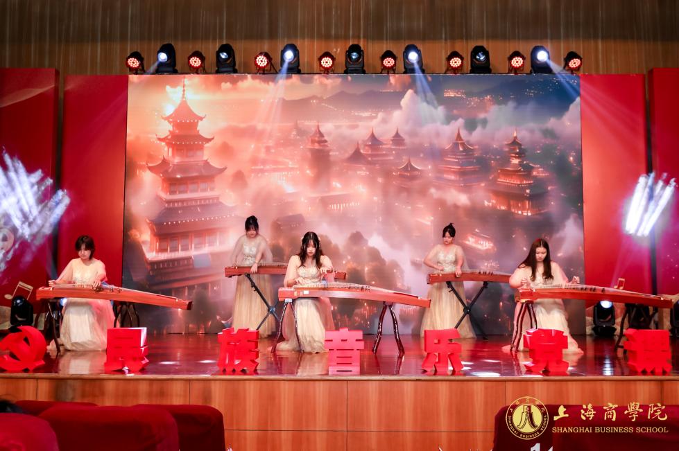 活动在一曲欢快热烈的民乐合奏《喜洋洋》中拉开帷幕,悠扬的曲调深深流露出青年学子对祖国的热爱之情。上海商学院党委常委、党委组织部、统战部部长朱巍娟,上海奉贤区金汇镇党委副书记郭东海分别发表致辞。朱巍娟指出,通过举办这场别开生面的民族音乐党课,上海商学院携手党建共建单位共同庆祝中华人民共和国成立75周年,以音乐和舞蹈的力量,引导2024级新生们传承红色基因,弘扬民族精神,激发爱国热情,同时,她勉励同学们要珍惜时代赋予的机遇,努力学习,积极进取,为实现中国式现代化贡献青春力量。