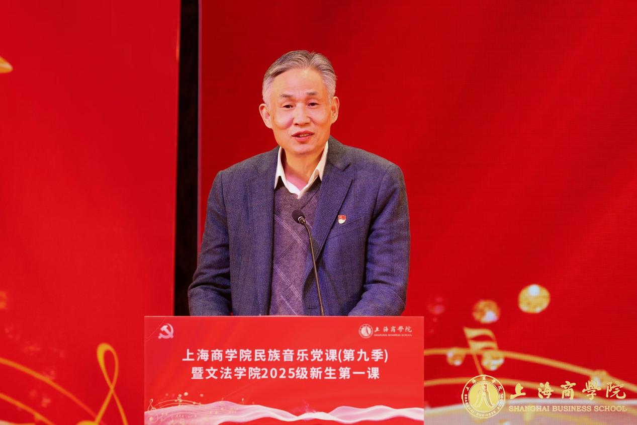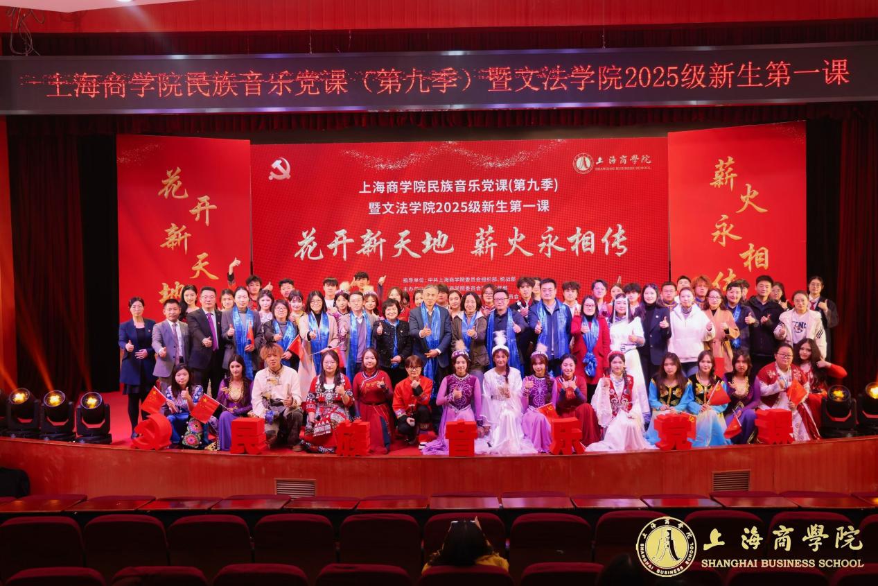 为深入学习贯彻党的二十届四中全会精神,传承和弘扬伟大的抗战精神、教育家精神、科学家精神,创新抓好师生党员学习载体,筑牢师生思想根基,11月19日晚,“花开新天地 薪火永相传”——上海商学院民族音乐党课(第九季)暨文法学院2025级新生第一课在奉浦校区146报告厅成功举办。上海商学院党委副书记陈晓峰,相关职能部门负责人,文法学院党政领导班子、教师代表与2025级全体新生共同见证了这场别开生面的“入学启航课”。