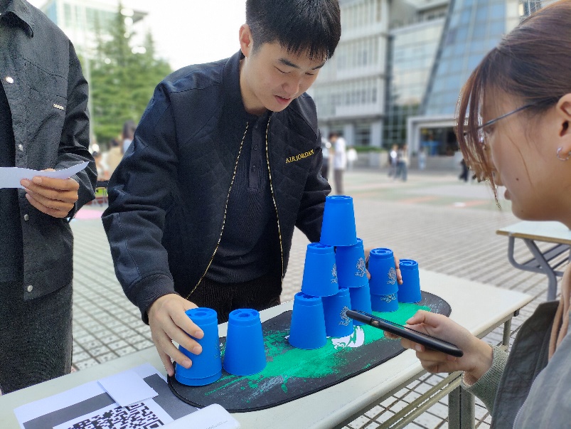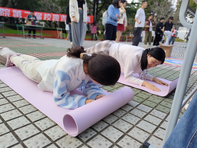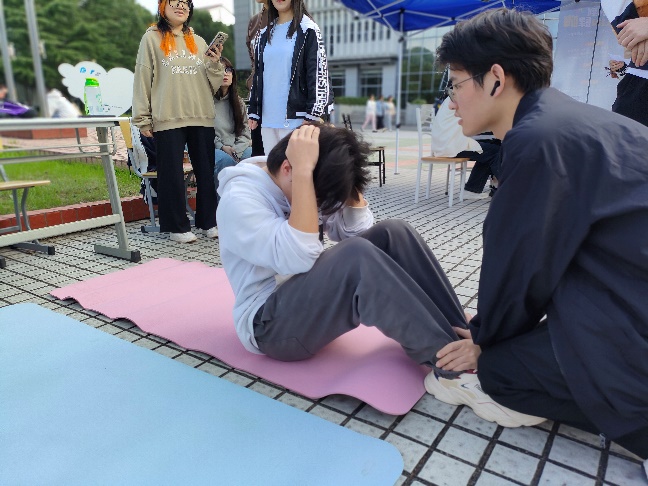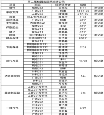 校园吉尼斯挑战赛匠心独运,策划了15个多元化的体竞项目,涉及力量、速度、技巧与耐力等趣味活动,包含60秒跳绳、60秒颠乒乓球、60秒仰卧起坐、60秒踢毽子、投壶、沙包、平板支撑、手忙脚乱、 叠杯、运球挑战、下倒森林、一鼓作气、重走长征路、珠行万里和达芬奇密码,活动充满趣味吸引了各院同学和老师踊跃参加。