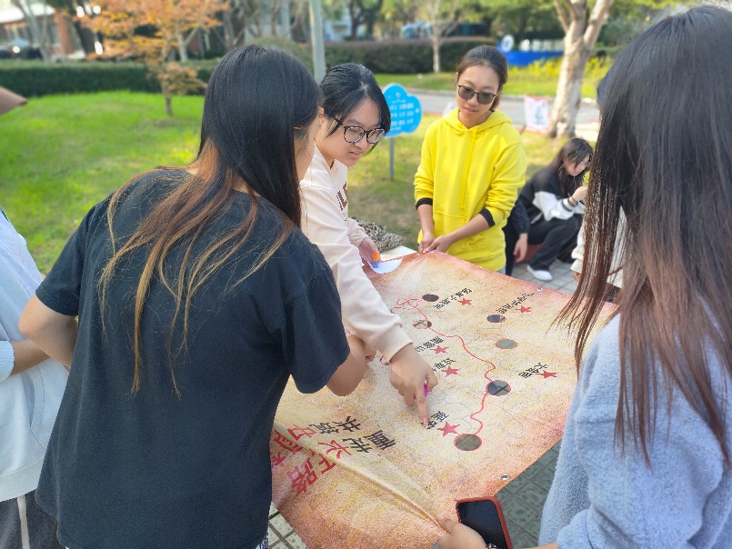 团队项目中选手们合作并进展现团队精神。下倒森林比赛中,团队成员们集中精神,弯腰预备,在“换”指令下达瞬间移步,在一声声口令中大家愈发默契,在最短时间内完成任务;重走长征路比赛场上,选手们站在地图周围手拿着地图边缘控制小球成功走完长征路并在途中不掉进动力,比赛考验队员们的协作能力和专注力;团队的选手们在比赛后相拥欢呼,欢呼胜利,欢呼快乐,欢呼青春,为立冬之后的校园增添一抹暖色,团队项目培养了同学们团队合作的能力,锻炼了同学们的合作意识。