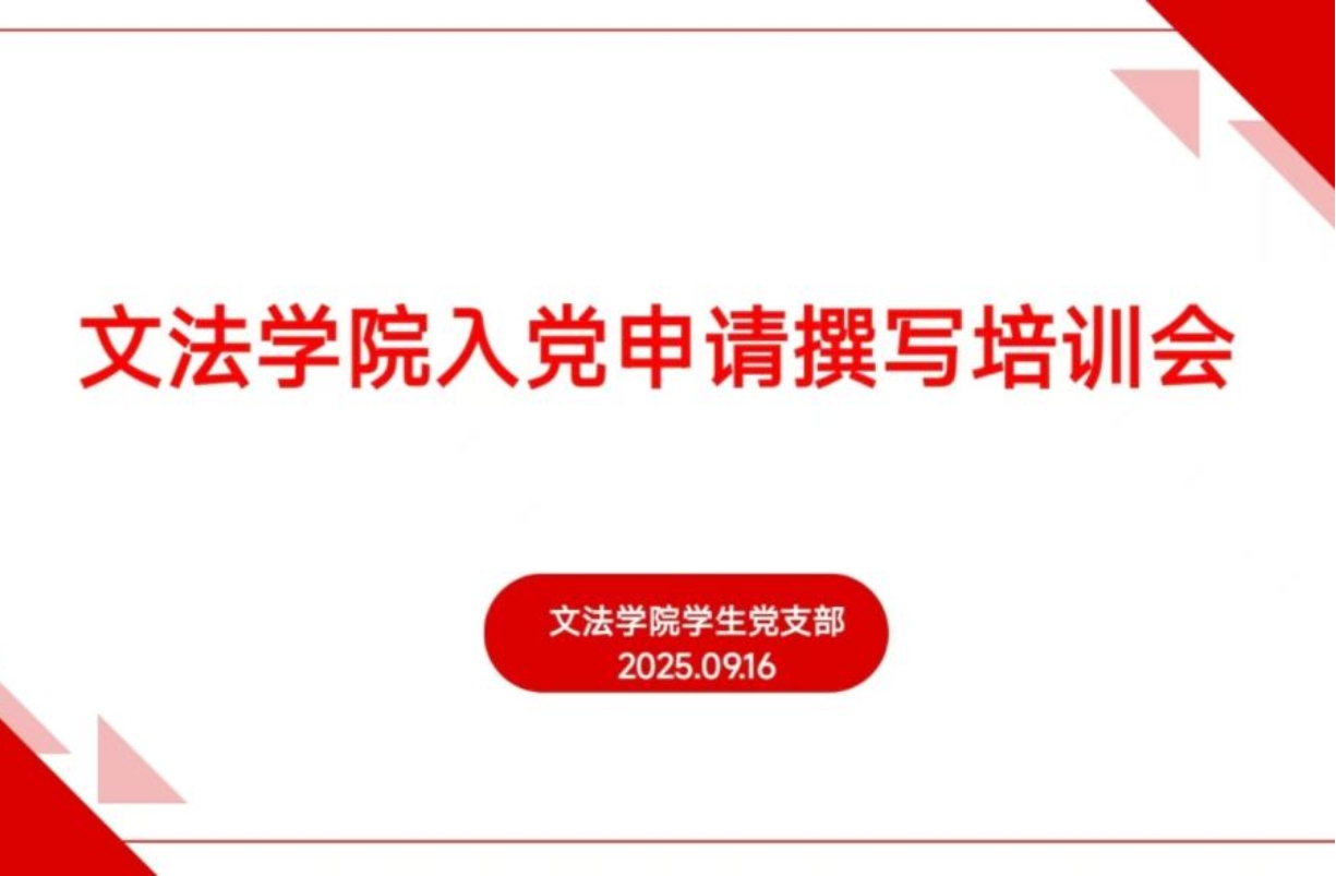 此次培训会的召开,既通过启蒙教育帮助新生筑牢思想根基、明晰入党方向,又以申请培训解决材料撰写的实操难题,形成“思想引领—流程认知—实践指导”的完整闭环。这一举措有效强化了学生对待入党工作的严肃态度与责任意识,为后续党员发展流程的有序推进奠定基础。未来,文法学院学生党支部将持续围绕党员发展各环节开展针对性指导,通过专题培训、一对一交流等形式,引导学生以实际行动向党组织靠拢,为党组织输送坚实的后备力量,成长为担当民族复兴大任的时代新人!