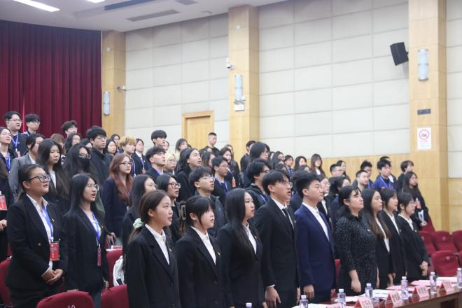大会第一次会议伊始,上海商学院文法学院副院长、院党总支副书记林丽娜老师致辞,首先对我院团学工作在这一年内的工作成绩表示肯定,其次对全体学生代表、学生干部和新一届的学生会干部提出以下三点希望:一、深化思想引领;二、提升服务本领;三、夯实组织根基。希望干部们以学代会为新起点,将个人理想融入民族的复兴,在实践中增强才干,在社会主义的奋斗中闪光。