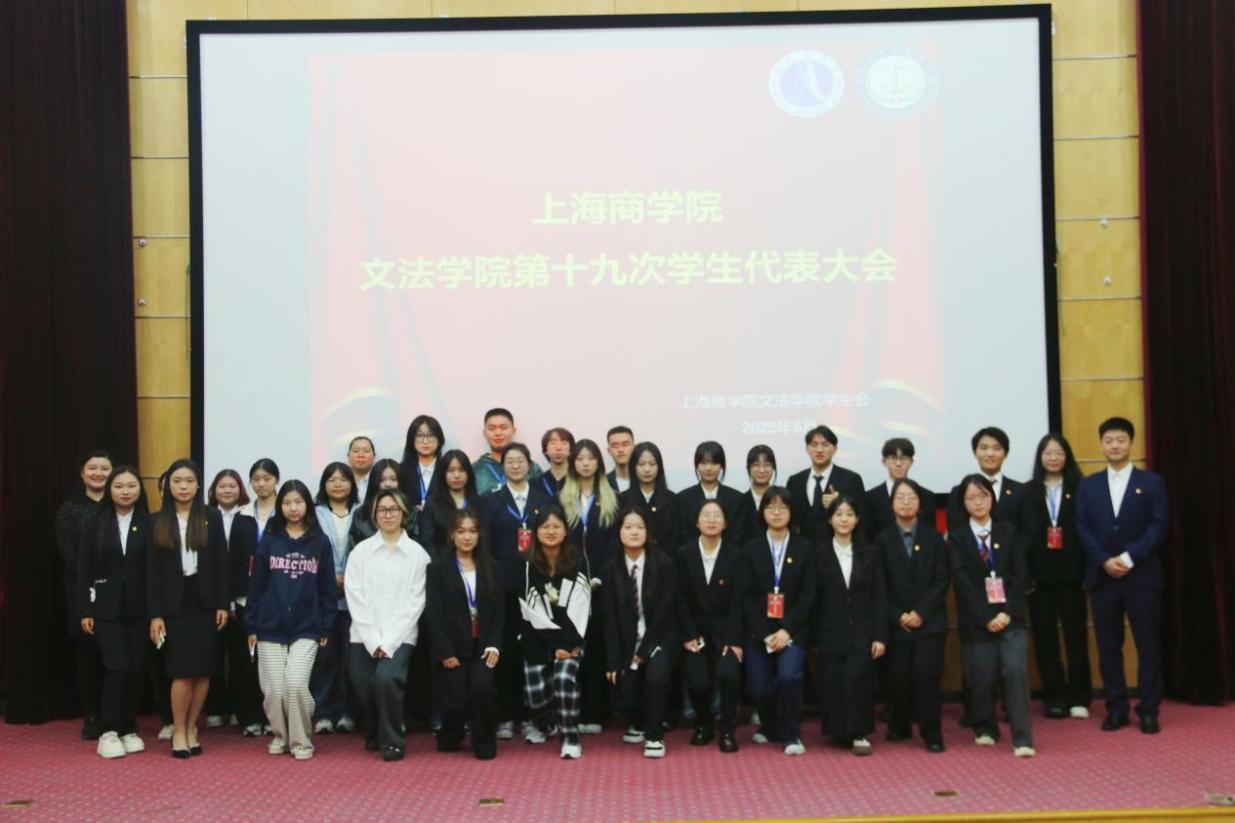 2025年5月8日上午,上海商学院文法学院第十九次学生代表大会于2号楼130隆重召开。出席本次会议的领导与嘉宾有上海商学院文法学院副院长、院党总支副书记林丽娜老师,文法学院团委书记董健鹏老师,主席团候选人,文法学院第十八次学生会主席团,文法学院第十九次学生代表大会全体代表。本次大会由文法学院主席团成员雷星主持。
