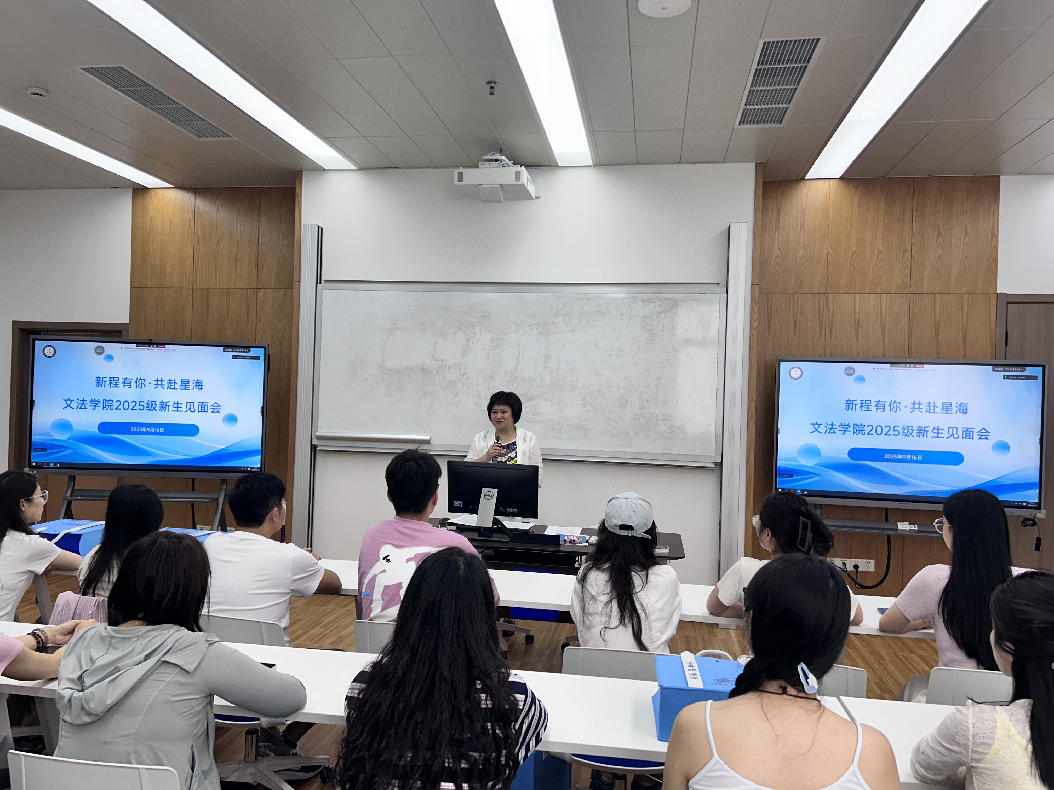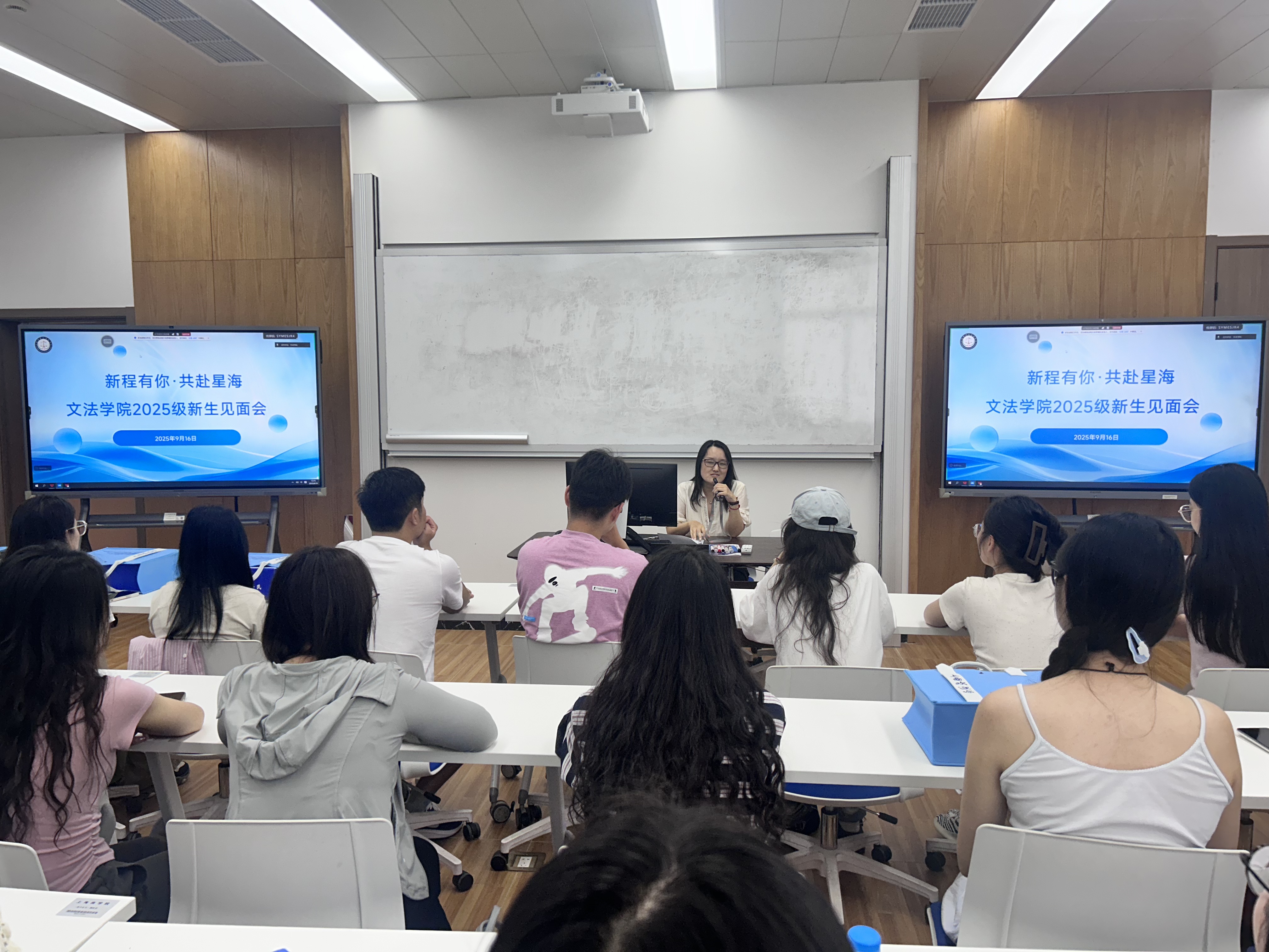 9月16日下午,上海商学院文法学院2025级新生见面会暨专业介绍会成功举行。文法学院党总支书记朱永莉、院长卢宁、副院长曹锐、社会工作系主任刘东、法学系主任何爱华,新生辅导员们及2025级全体新生参加了此次会议。会议由党总支副书记、副院长林丽娜主持。