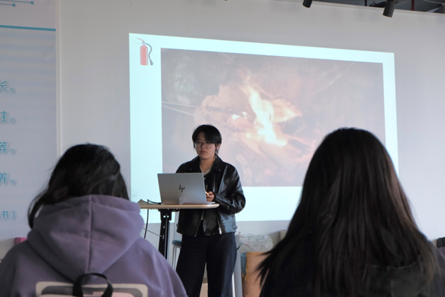 在消防知识普及活动中,由2024级的黄奕同学担任主持人,她以生动而深刻的方式引领全体参会同学深入了解消防知识及生命安全的重要性。通过回顾近年来发生在高校内的火灾事故,警醒大家火灾的无情与生命的脆弱,让在场的每一位同学都深刻意识到火灾预防的紧迫性和必要性。