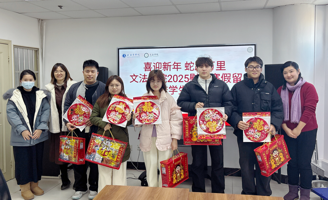 喜迎新年,蛇跃万里。2025年1月上中旬,文法学院通过座谈交流、走访慰问等不同形式,向留校学生送上节日的问候与祝福,及暖心大礼包。