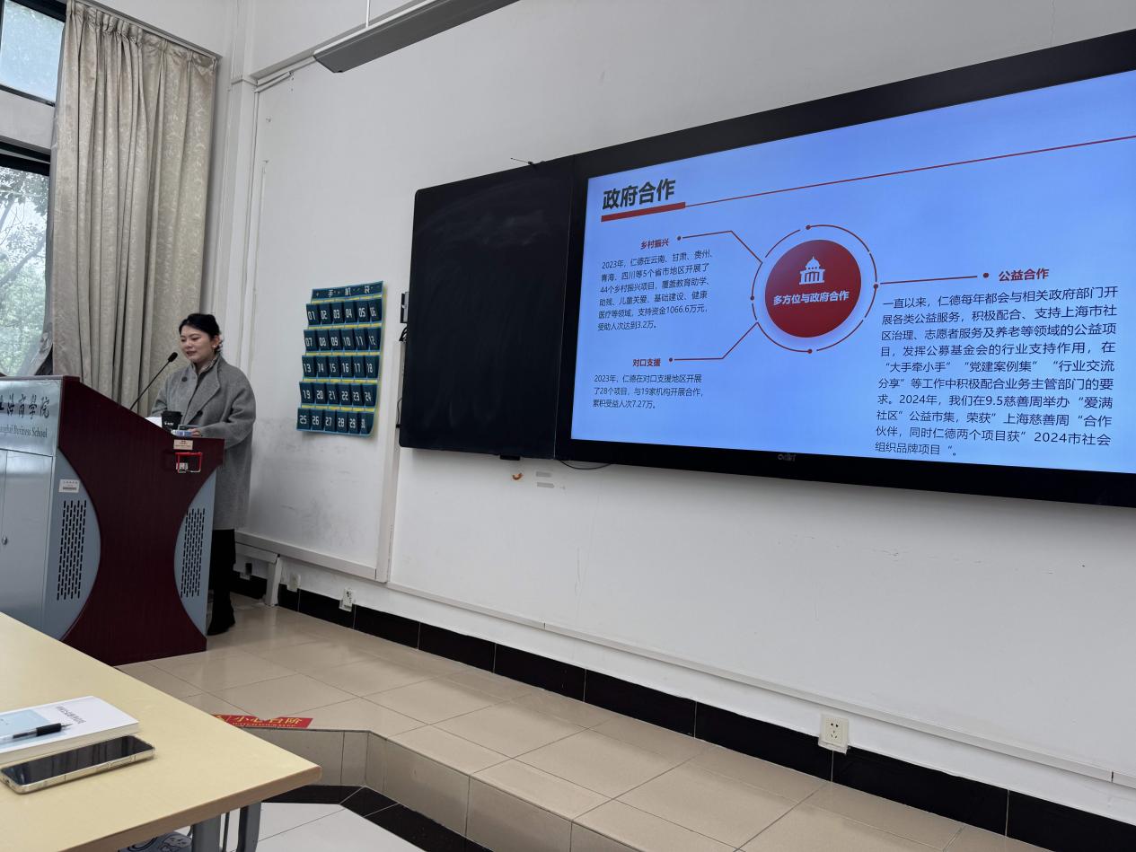 11月17日,文法学院社会工作系《慈善信托实务》课程迎来了一场来自行业前沿的教学分享。课程组特邀上海仁德基金会合作发展总监杨静女士走进课堂,为同学们带来了一线基金会视角的专业交流与指导。