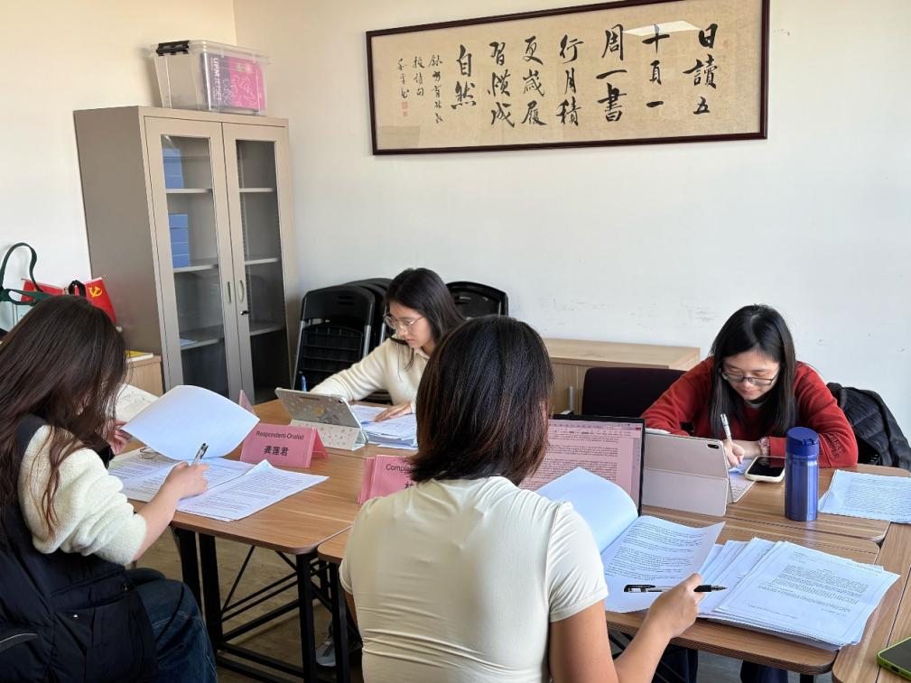 在口头答辩阶段,全体队员开始驻校备赛,分工撰写口头陈述稿,并抓紧一切时间搜索资料与模拟演练。比赛前夜,几位口头辩手练习至凌晨一点多成为常态,力求熟悉所有可能的问题与回应思路,确保在庭审中从容应对专家组的提问。总体上,在口头辩论环节,队员们沉着冷静、应对流畅,展现出良好的国际法素养与英语表达能力,赢得了评委们的一致认可。