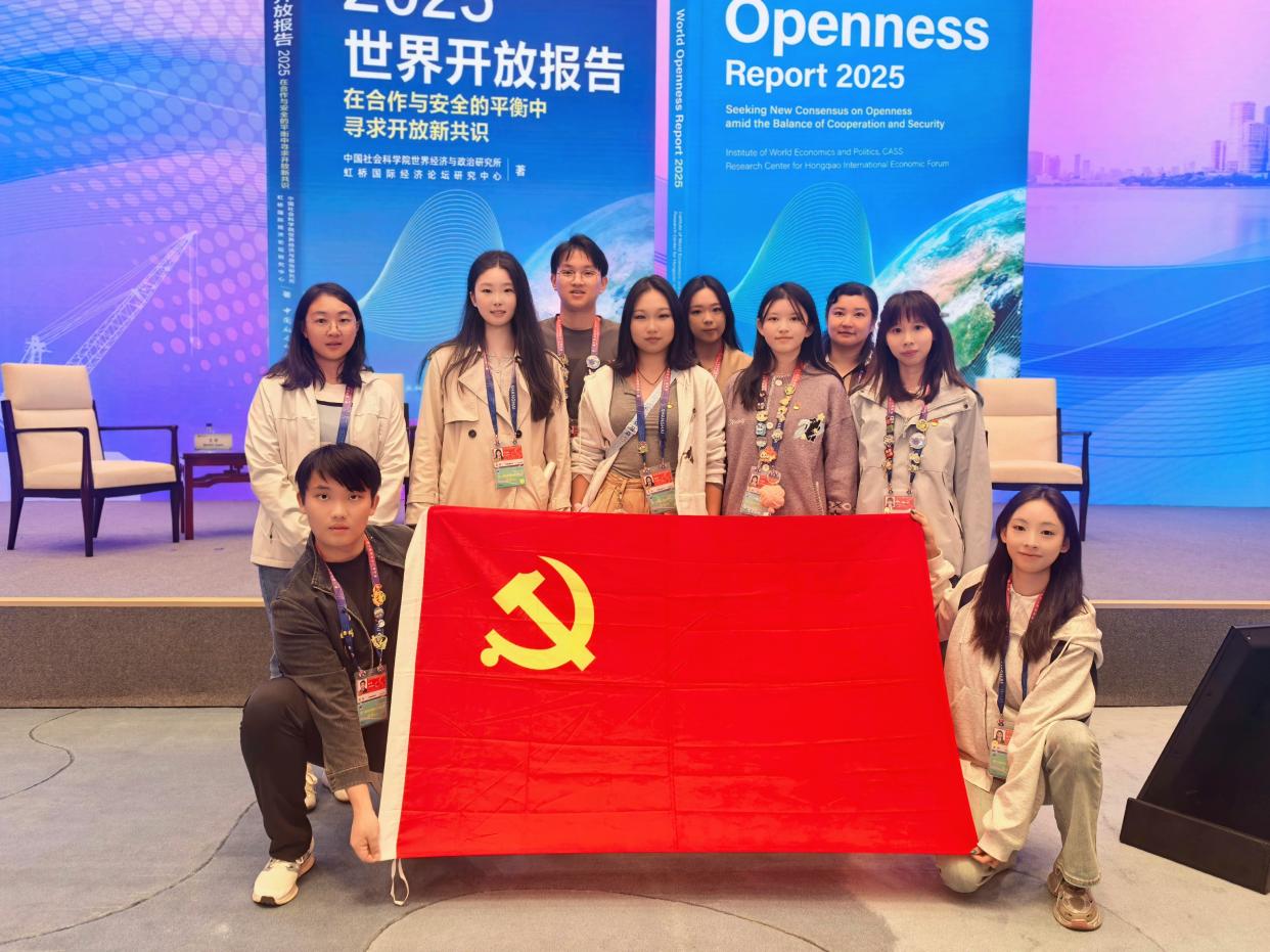为引导学生党员近距离感受全球开放合作脉动,深化对国家对外开放战略的理解,将爱国情、强国志、报国行融入时代实践,上海商学院文法学院学生党支部于11月5日组织全体党员赴国家会展中心参加第八届虹桥国际经济论坛分论坛“《世界开放报告2025》发布暨国际研讨会”,以实地学习赋能主题党日,让学生党员在前沿实践中坚定理想、锤炼担当。上海商学院文法学院党总支副书记林丽娜、学生党支部书记孙小烨带队参加活动。