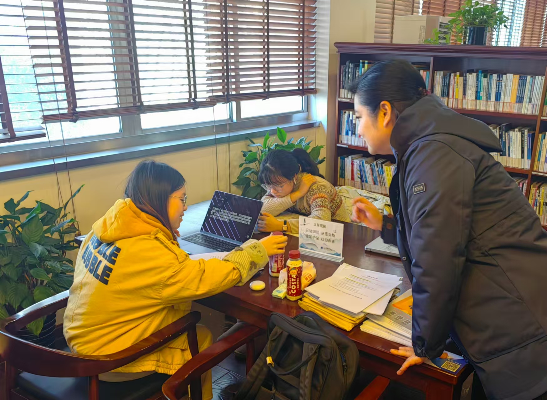 考研考公进入冲刺关键期,为帮助学子稳住心态、缓解压力,12月18日,文法学院党总支副书记林丽娜及毕业班辅导员陆曼兮组成慰问小组,走进图书馆、自习室,为大四备考学子送上暖心关怀。